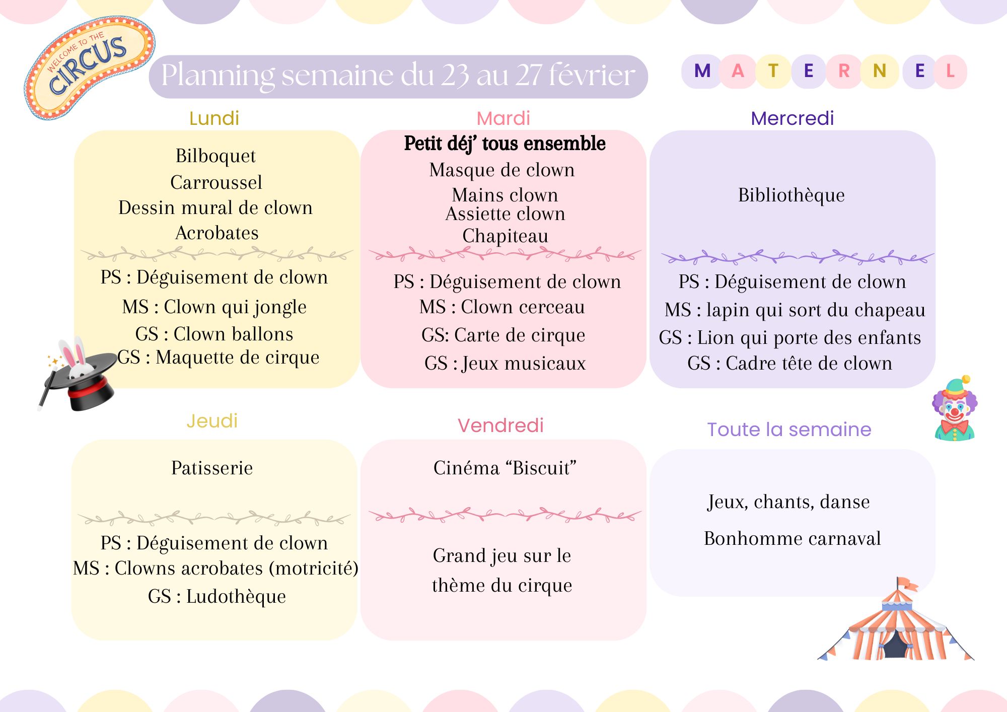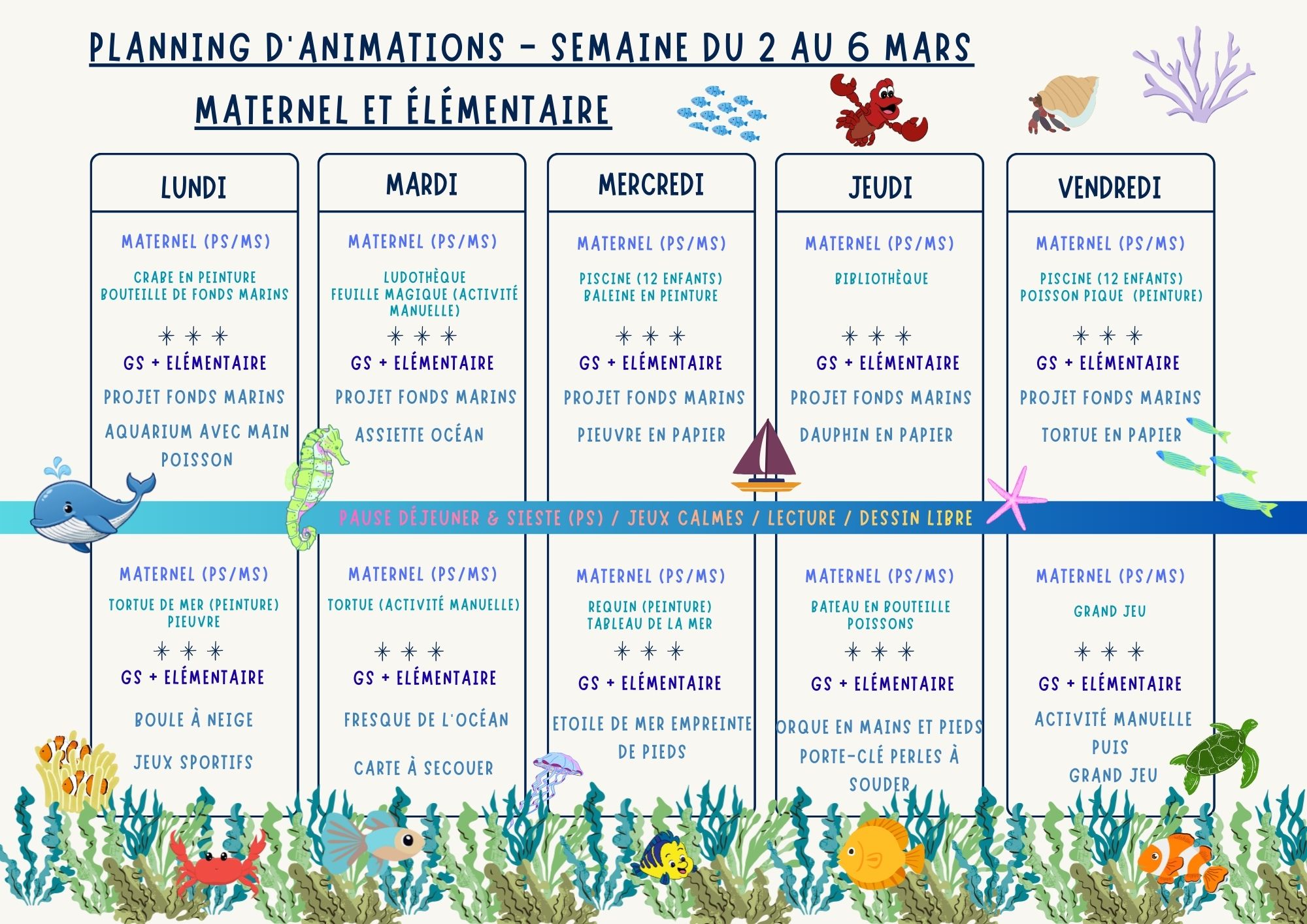 Vous trouverez ci-joint les différents programme proposés pour ces vacances d'hiver.